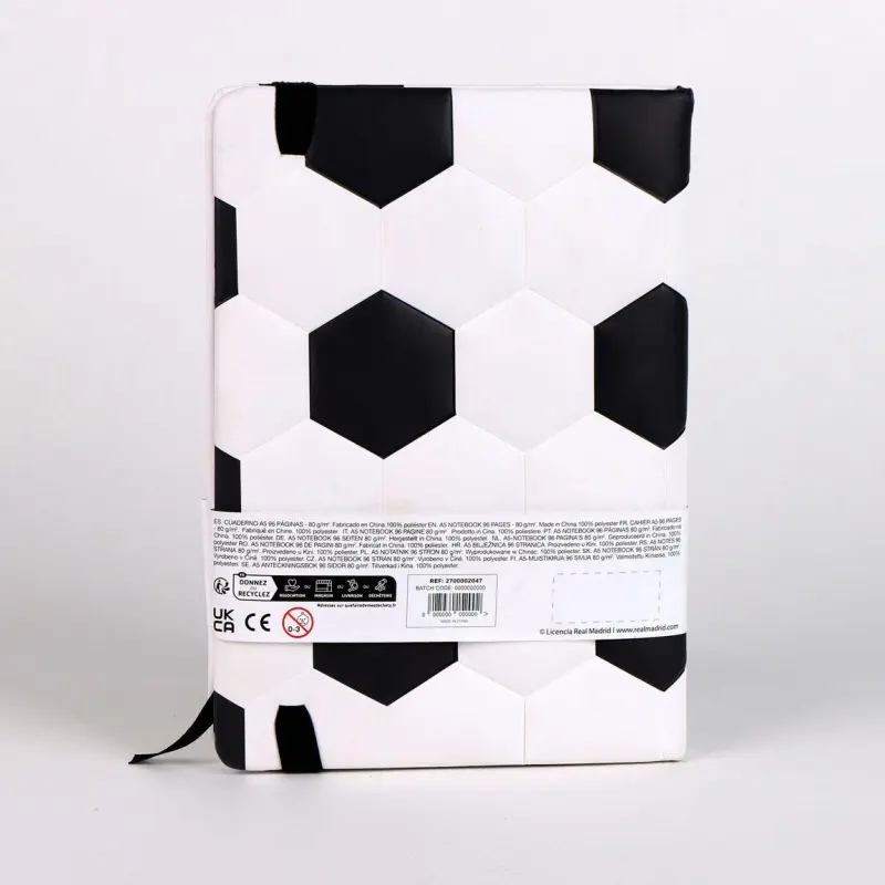 Polstrovaný zošit Real Madrid spája praktickosť so športovým štýlom a poteší každého fanúšika tohto legendárneho klubu ⚽. Pevná, mäkko polstrovaná obálka s motívom futbalovej lopty chráni vnútorné strany a zároveň pôsobí moderne a atraktívne.