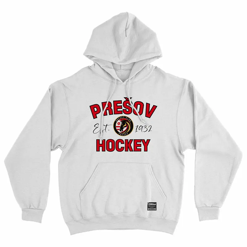 Bavlnená mikina s kapucňou a klokaním vreckom s logom HC Prešov. Mikina má dvojitú kapucňu so sťahovacou šnúrkou, všité rukávy, bez bočných švov. Má rebrový lem s elastanom na manžetách a spodnom okraji.