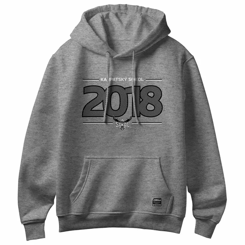 Bavlnená mikina s kapucňou a klokaním vreckom s logom HK´18 Karpatský Sokol. Mikina má dvojitú kapucňu so sťahovacou šnúrkou, všité rukávy, bez bočných švov. Má rebrový lem s elastanom na manžetách a spodnom okraji.