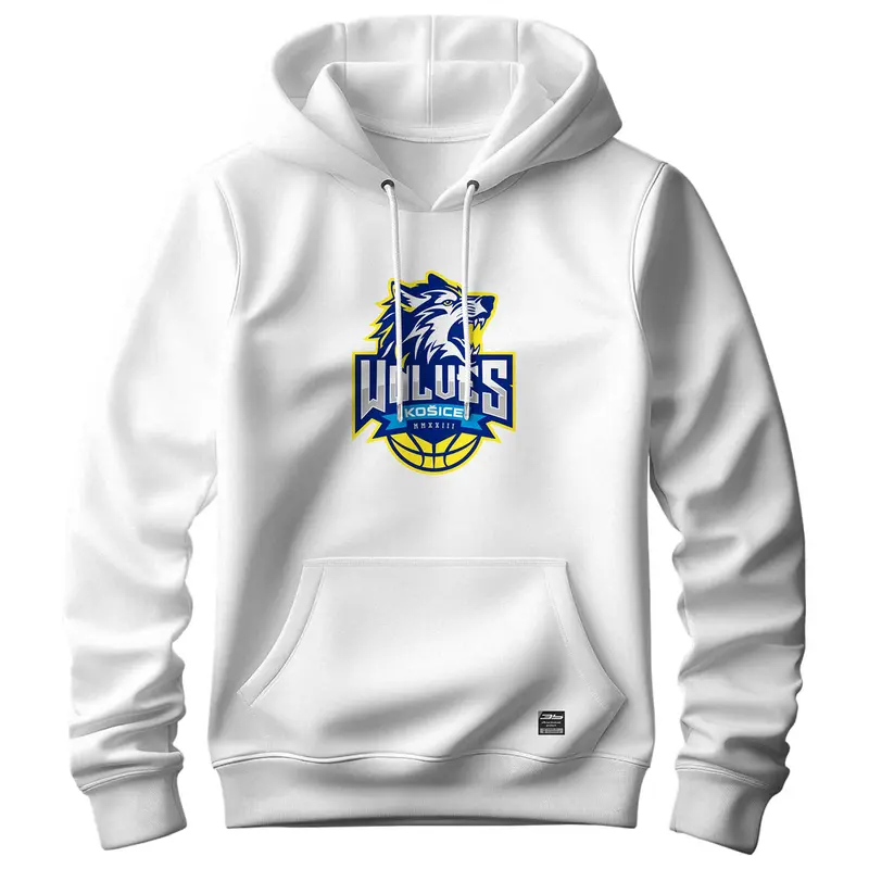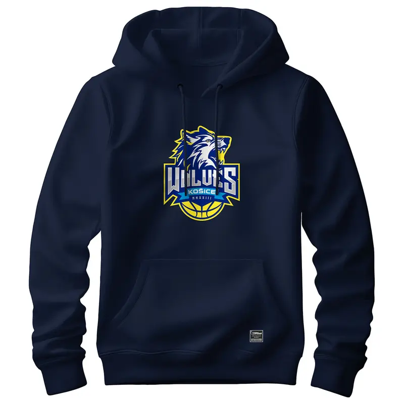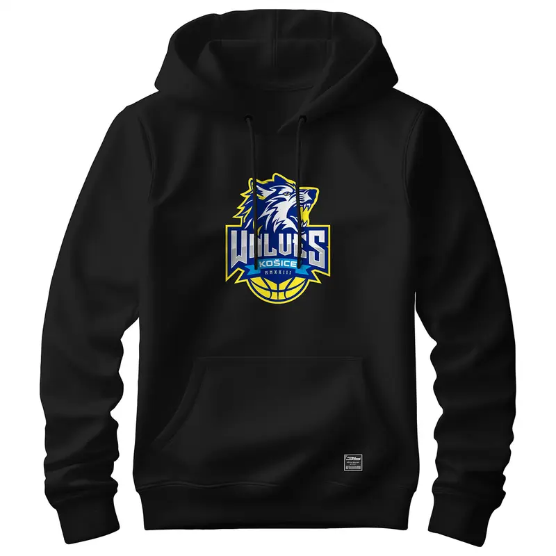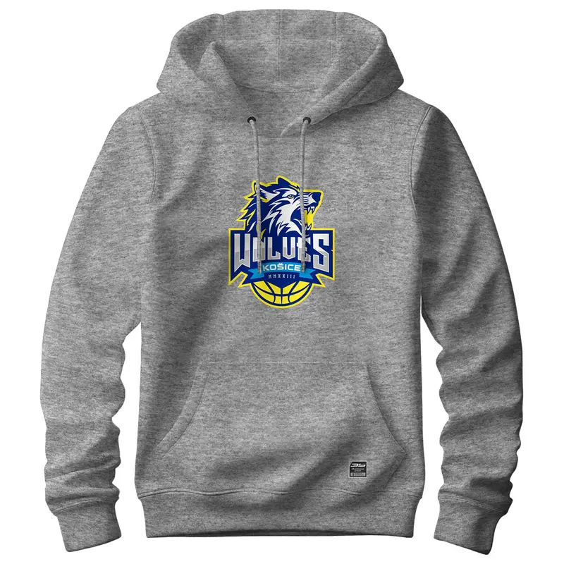 Bavlnená mikina s kapucňou a klokaním vreckom s logom Košice Wolves. Mikina má dvojitú kapucňu so sťahovacou šnúrkou, všité rukávy, bez bočných švov. Má rebrový lem s elastanom na manžetách a spodnom okraji.