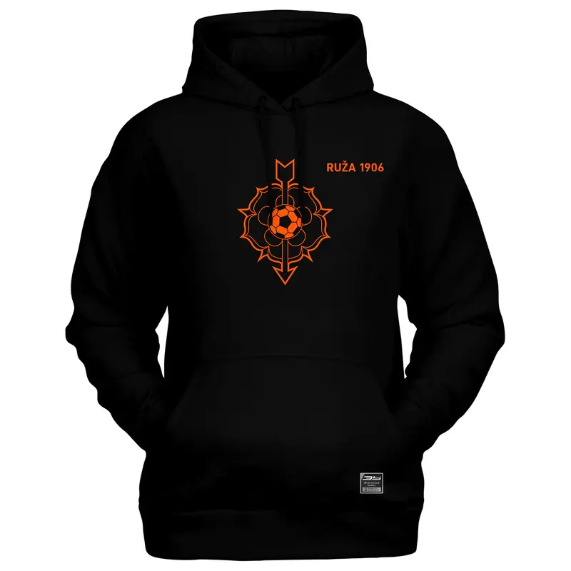 Bavlnená mikina s kapucňou a klokaním vreckom s logom MFK Ružomberok. Mikina má dvojitú kapucňu so sťahovacou šnúrkou, všité rukávy, bez bočných švov. Má rebrový lem s elastanom na manžetách a spodnom okraji. Možnosť dotlače mena a čísla za príplatok.