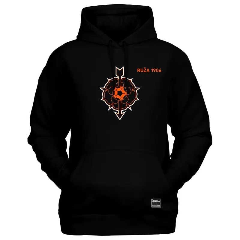 Bavlnená mikina s kapucňou a klokaním vreckom s logom MFK Ružomberok. Mikina má dvojitú kapucňu so sťahovacou šnúrkou, všité rukávy, bez bočných švov. Má rebrový lem s elastanom na manžetách a spodnom okraji. Možnosť dotlače mena a čísla za príplatok.