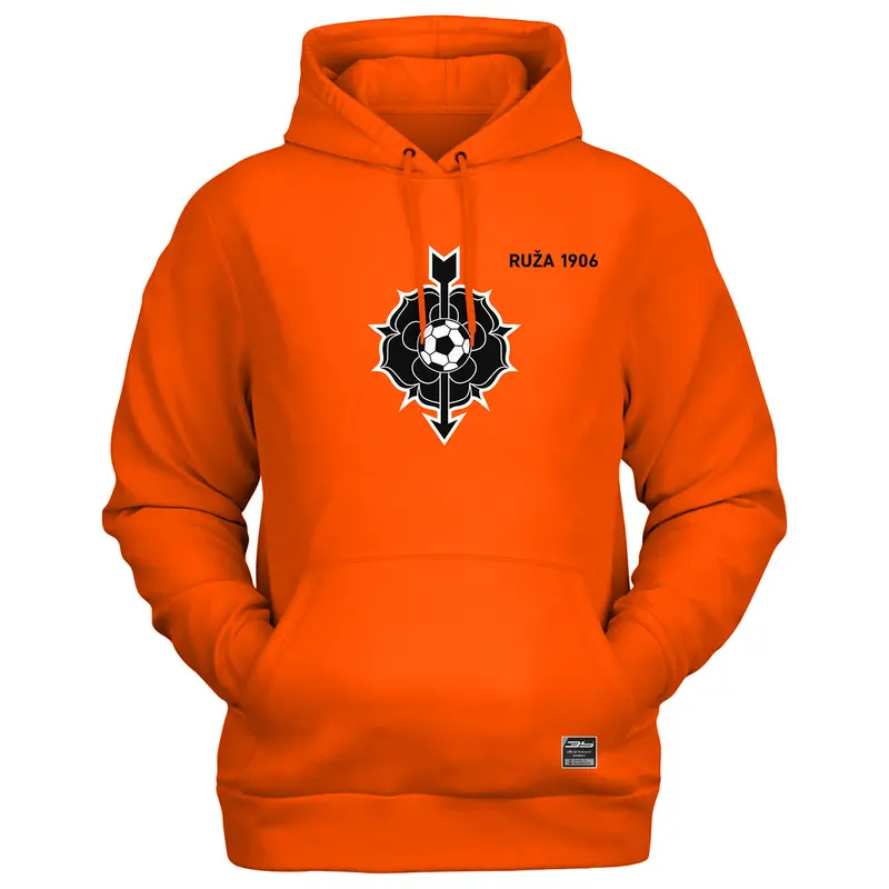 Bavlnená mikina s kapucňou a klokaním vreckom s logom MFK Ružomberok. Mikina má dvojitú kapucňu so sťahovacou šnúrkou, všité rukávy, bez bočných švov. Má rebrový lem s elastanom na manžetách a spodnom okraji. Možnosť dotlače mena a čísla za príplatok.
