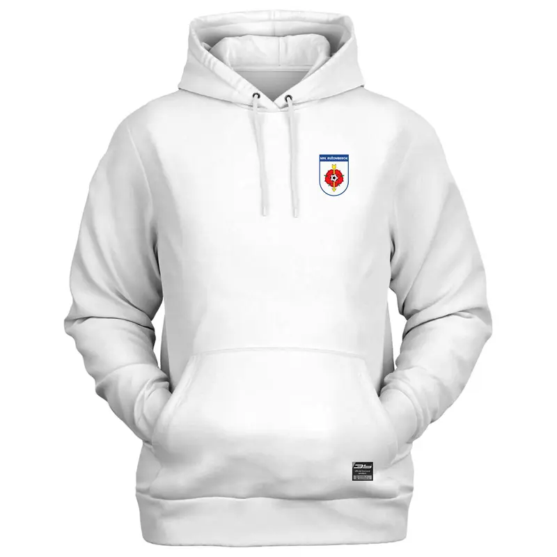 Bavlnená mikina s kapucňou a klokaním vreckom s logom MFK Ružomberok. Mikina má dvojitú kapucňu so sťahovacou šnúrkou, všité rukávy, bez bočných švov. Má rebrový lem s elastanom na manžetách a spodnom okraji. Možnosť dotlače mena a čísla za príplatok.