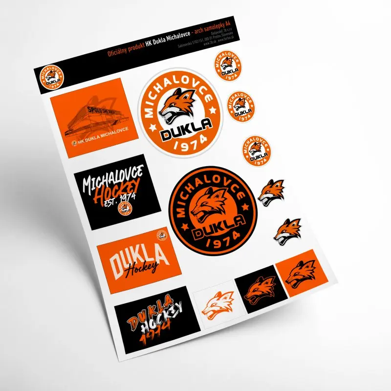 Kolekcia dekoračných samolepiek Vášho obľúbeného klubu v rôznych veľkostiach. Nálepky sa dajú použiť na všetky hladké povrchy. Rozmer hárku je vo veľkosti A4. Oficiálny produkt firmy 3b s.r o. , ktorá je oficiálnym držiteľom licenčných práv súvisiacich s merchandisingovými výrobkami HK Dukla Michalovce. Prípadné informácie pred zaslaním objednávky Vám môžeme poskytnúť na tel. čísle 0918 966 245 alebo forfan@3b.sk.