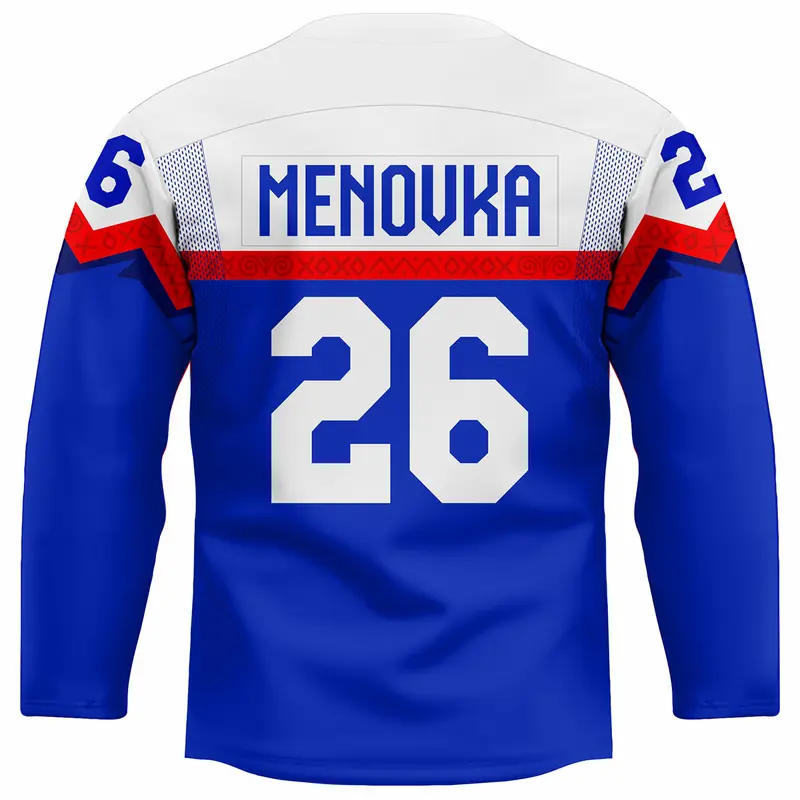 Slovenský hokejový dres vyrobený sublimačnou* metódou z 250gr/m2 100% PES. Cena dresu je bez mena a bez čísla. Dotlač mena a čísla 15€. Dres je v hráčskom, širšom, strihu, má profesionálny golier, sedlá a vetráky s našívaným slovenským znakom na hrudi. V prípade personalizácie dresu sú na dres došívané čísla + sublimovaná našívaná menovka.