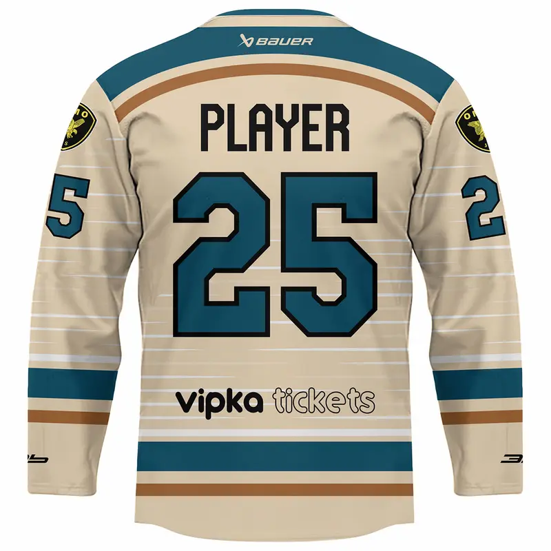 Originálny hokejový dres celopotlačený vyrobený sublimačnou* metódou z 250gr/m2 100% PES s vetracími časťami, spevneným sedlom z 300g/m2 látky, profi golier s čistiacim pásikom...