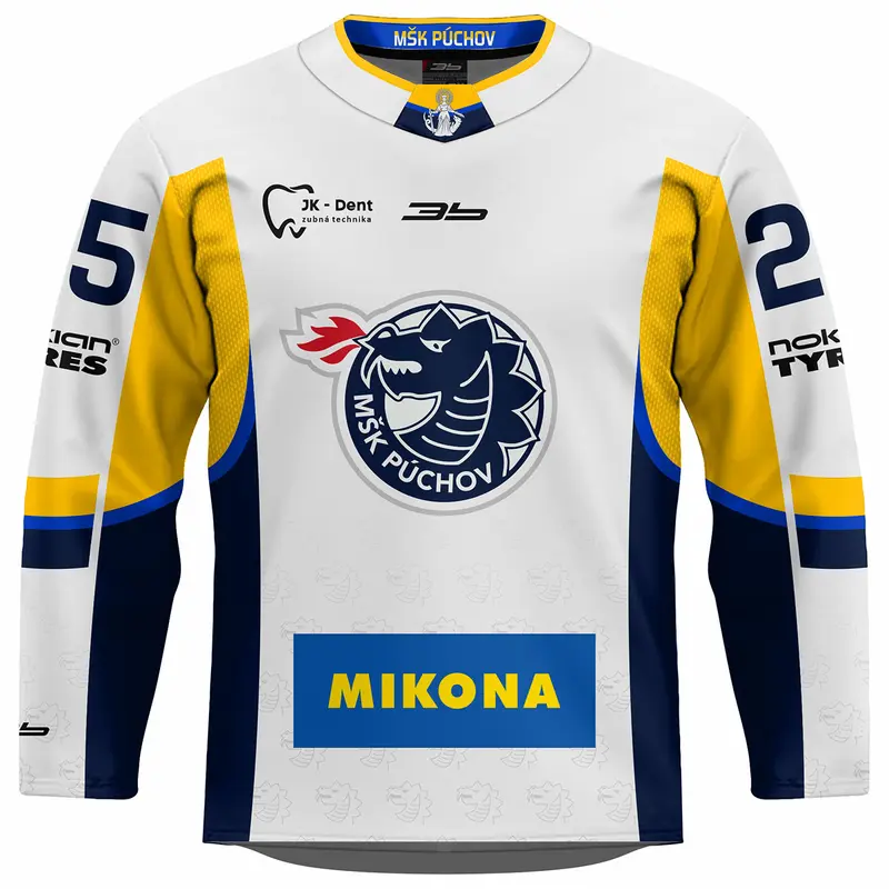 Originálny hokejový dres celopotlačený vyrobený sublimačnou* metódou z 250gr/m2 100% PES spevneným sedlom z 300g/m2 látky, profi golier s čistiacim pásikom. Cena dresu je bez mena a bez čísla. Dotlač mena a čísla 3€. Oficiálny produkt firmy 3b s.r o. , ktorá je oficiálnym držiteľom licenčných práv súvisiacich s merchandisingovými výrobkami MŠK Púchov . Prípadné informácie pred zaslaním objednávky Vám môžeme poskytnúť na tel. čísle 0918 966 245 alebo forfan@3b.sk.
