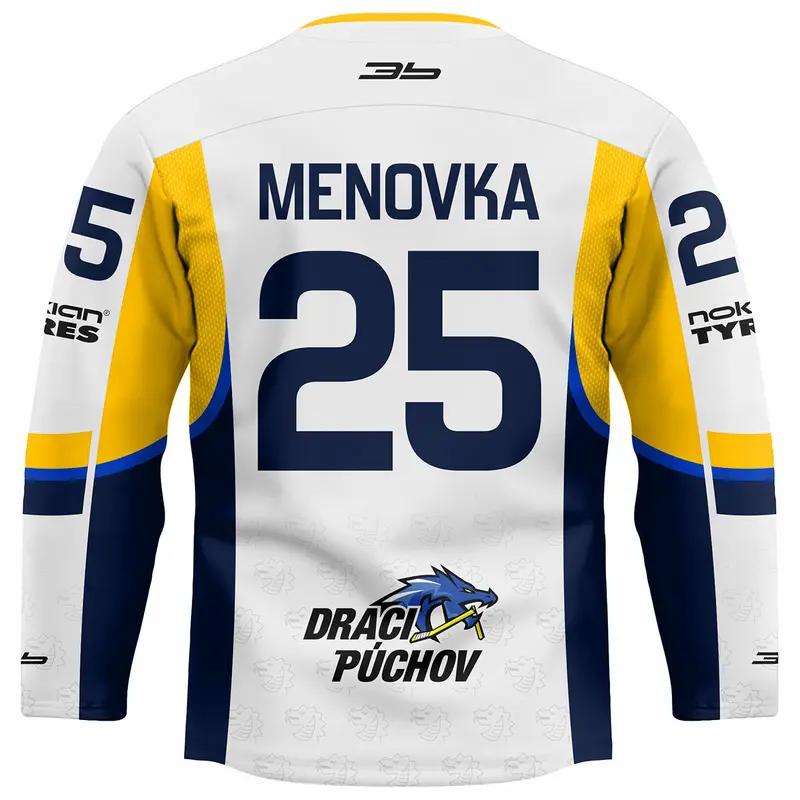 Originálny hokejový dres celopotlačený vyrobený sublimačnou* metódou z 250gr/m2 100% PES spevneným sedlom z 300g/m2 látky, profi golier s čistiacim pásikom...