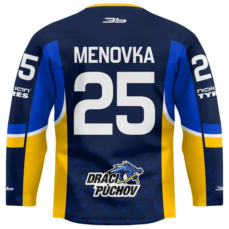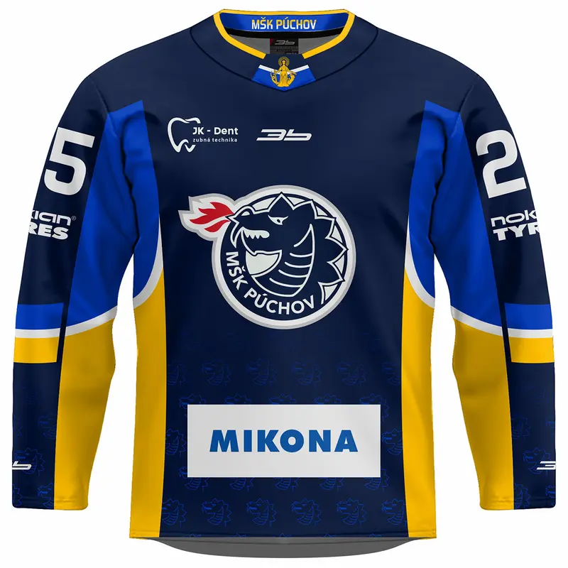 Hokejový dres je celopotlačený vyrobený sublimačnou* metódou zo 160gr/m2 100% PES s retro golierom. Cena dresu je bez mena a bez čísla. Dotlač mena a čísla 5€. Pri drese máte možnosť výberu typu dresu. Fanúšikovský dres má užší strih oproti hráčskemu, ktorý je klasický na hokejovú výstroj. Oficiálny produkt firmy 3b s.r o. , ktorá je oficiálnym držiteľom licenčných práv súvisiacich s merchandisingovými výrobkami MŠK Púchov . Prípadné informácie pred zaslaním objednávky Vám môžeme poskytnúť na tel. čísle 0918 966 245 alebo forfan@3b.sk