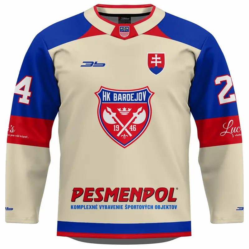Hokejový dres je celopotlačený vyrobený sublimačnou* metódou zo 160gr/m2 100% PES. Cena dresu je bez mena a bez čísla. Dotlač mena a čísla 3€. Pri drese máte možnosť výberu typu dresu. Fanúšikovský dres má užší strih oproti hráčskemu, ktorý je klasický na hokejovú výstroj. Oficiálny produkt firmy 3b s.r o. , ktorá je oficiálnym držiteľom licenčných práv súvisiacich s merchandisingovými výrobkami HK Bardejov. Prípadné informácie pred zaslaním objednávky Vám môžeme poskytnúť na tel. čísle 0918 966 245 alebo forfan@3b.sk