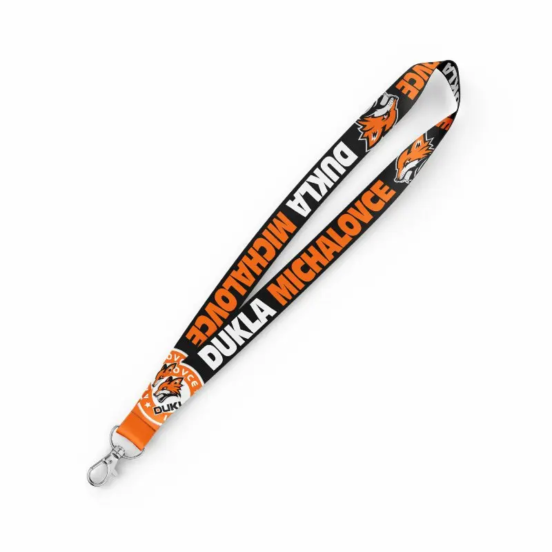 Kľúčenka plne potlačená grafikou HK Dukla Michalovce (*sublimačná potlač) s kovovou karabinkou...