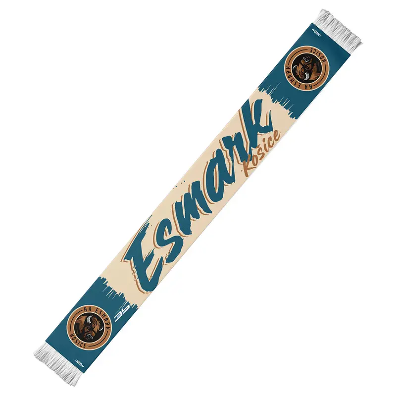Fanúšikovský šál s logom Vášho obľúbeného klubu vyrobený sublimačnou* technológiou z oboch strán. Možnosť výberu druhu látky. Tenký je vyrobený z 300g/m² látky a zateplený, ktorý Vás zahreje je vyrobený z hrubej teplakoviny. Obe typy sú z hladkého a pohodlného materiálu. Oficiálny produkt firmy 3b s.r o. , ktorá je oficiálnym držiteľom licenčných práv súvisiacich s merchandisingovými výrobkami HK Esmark Košice. Prípadné informácie pred zaslaním objednávky Vám môžeme poskytnúť na tel. čísle 0918 966 245 alebo forfan@3b.sk