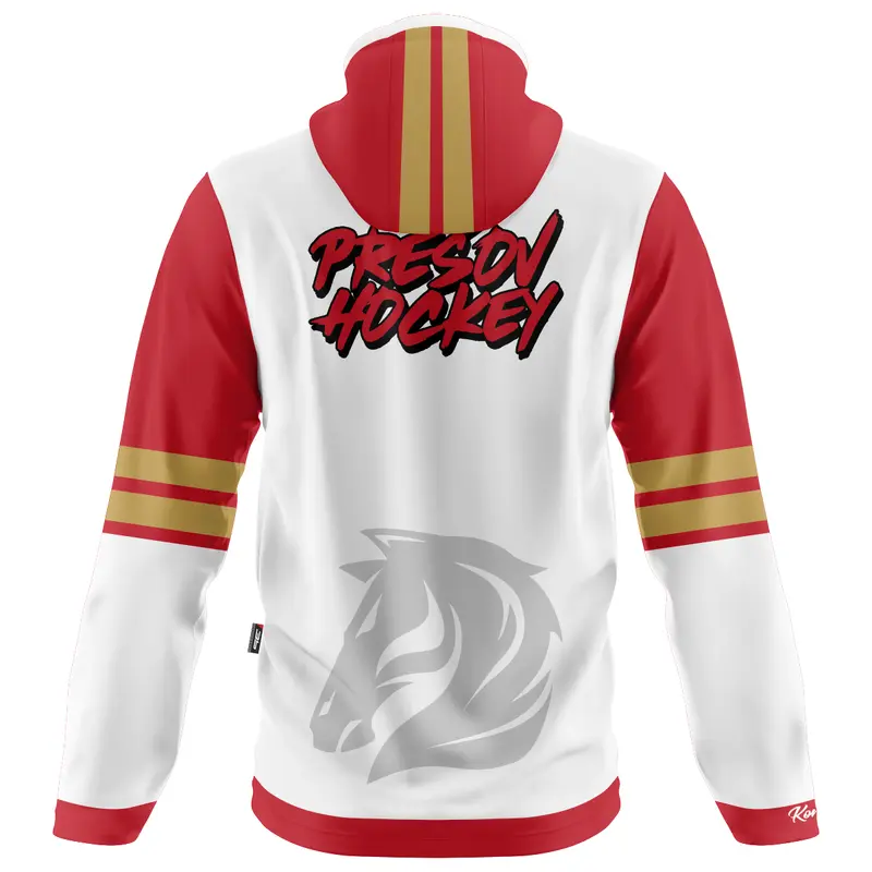 Bunda je vyrobená sublimačnou metódou. Sublimácia je pojem, označujúci proces výroby potlače, ktorý využíva teplo na prenos farbiva z média na materiál. Oficiálny produkt firmy 3b s.r o. , ktorá je oficiálnym držiteľom licenčných práv súvisiacich s merchandisingovými výrobkami HC Prešov. Prípadné informácie pred zaslaním objednávky Vám môžeme poskytnúť na tel. čísle 0918 966 245 alebo forfan@3b.sk