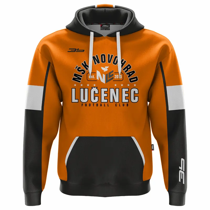 Sublimovaná hrubá mikina s kapucňou, patentami a klokaním vreckom s logom MŠK Novohrad Lučenec vyrobená z 300g látky.