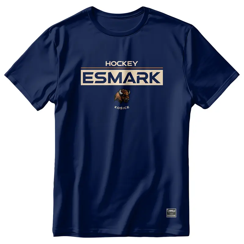 Bavlnené tričko s potlačou. Možnosť dotlače mena a čísla za príplatok. Oficiálny produkt firmy 3b s.r o. , ktorá je oficiálnym držiteľom licenčných práv súvisiacich s merchandisingovými výrobkami HK Esmark Košice. Prípadné informácie pred zaslaním objednávky Vám môžeme poskytnúť na tel. čísle 0918 966 245 alebo na forfan@3b.sk