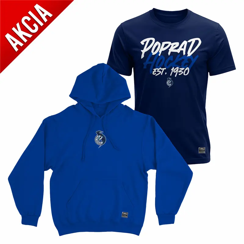 Akciový balík obsahuje bavlnenú mikina s kapucňou a bavlné tričko s logom HK Poprad...