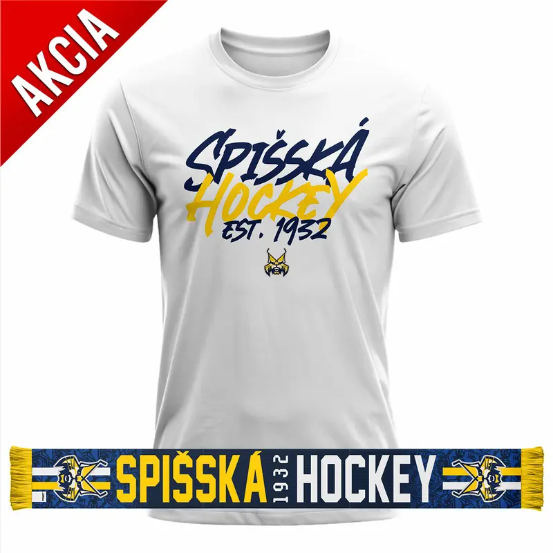 Akciový balík obsahuje šál a bavlnené tričko s logom HK Spišská Nová Ves.